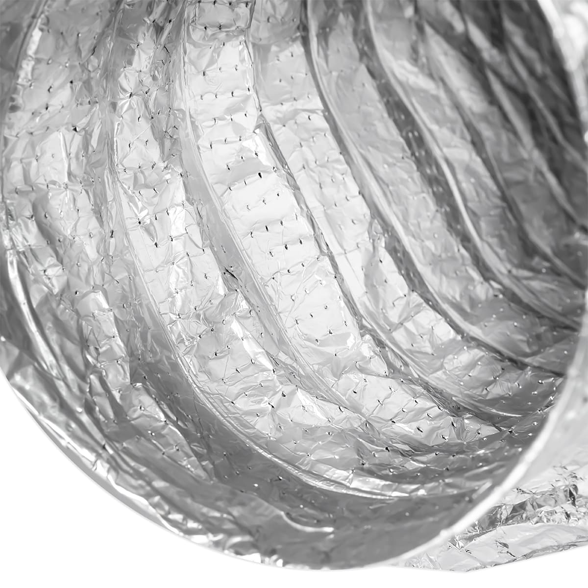 Шумоглушитель обработан с обоих концов алюминиевой лентой для быстрого и удобного подсоединения к вентиляционному оборудованию. Гибкость упрощает монтаж в ограниченных пространствах. Спираль во внутреннем воздуховоде и внешней защитной оболочке помогают держать форму и защищают от деформации.