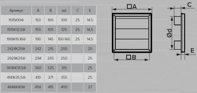 • Вентиляционная решетка самозакрывающаяся ЭРА 1515К12,5Ф