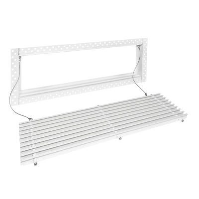 Данная решетка подходит для монтажа на любую поверхность под финишную отделку. Рама оснащена «полкой» 1,9 мм и рифлеными краями для большей адгезии финишного материала – шпатлевки, цемента. Решетка имеет съемную центральную часть с декоративным экраном. Она крепится к корпусу прочными металлическими тросиками, легко снимается для очистки и удобного обслуживания.
