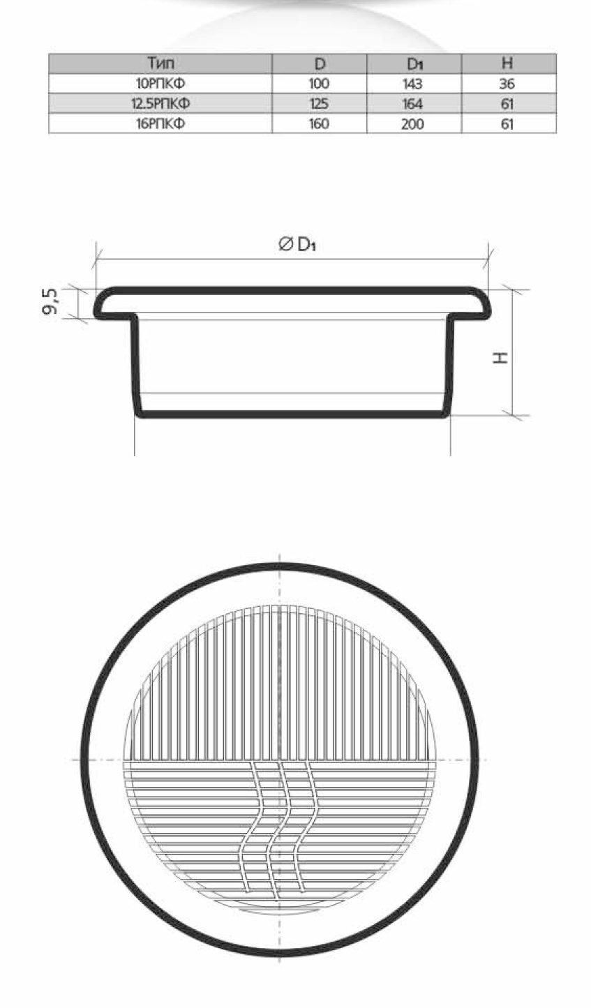 Решетка вентиляционная круглая D164 с фланцем D125